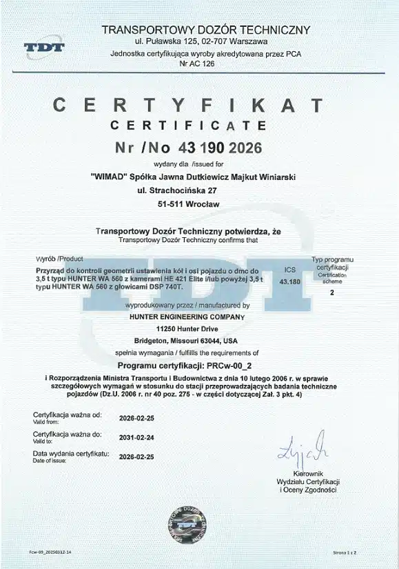 Tak. System do szybkiego pomiaru geometrii ustawienia kół HUNTER QCD można przetestować w Centrum szkoleniowym WIMAD we Wrocławiu lub wypożyczając mobilny kontener wyposażony w ww. urządzenie (patrz Biuletyn nr 140).